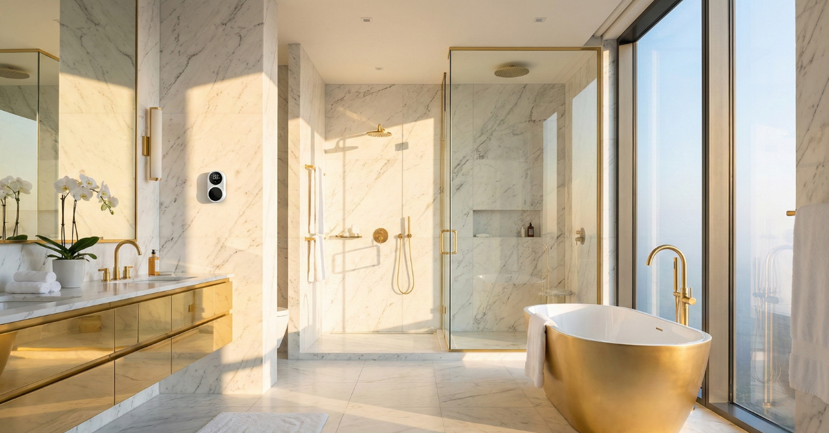 We recommend installing the Nuvioq One on smooth, non-porous surfaces like tile, marble, glass, mirror, or metal for the strongest bond. While the adhesive is industrial-strength, painted drywall or wallpaper may peel off under the weight, so smooth bathroom surfaces are best.